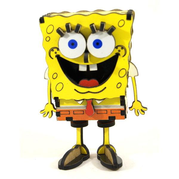 bob l’éponge 3d en bois un cadeau rigolo impression par sublimation, 32 pièces à assembler sans colle. jeu de construction à partir de 12 ans, notice illustrée.