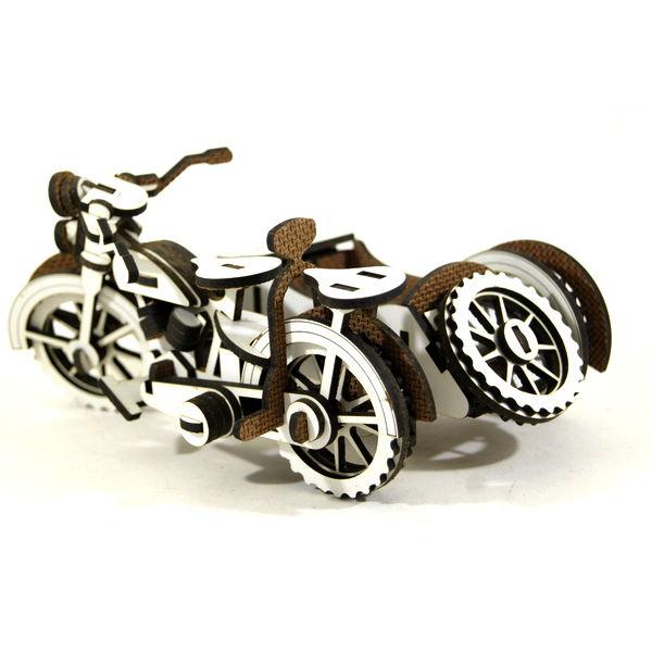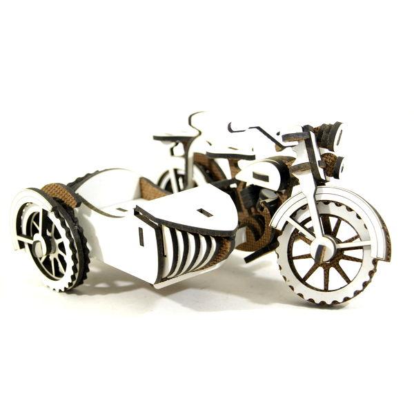 Side-car puzzle 3d en bois blanc mélaminé, 90 pièces à assembler sans colle. jeu de construction à partir de 16 ans, notice illustrée.